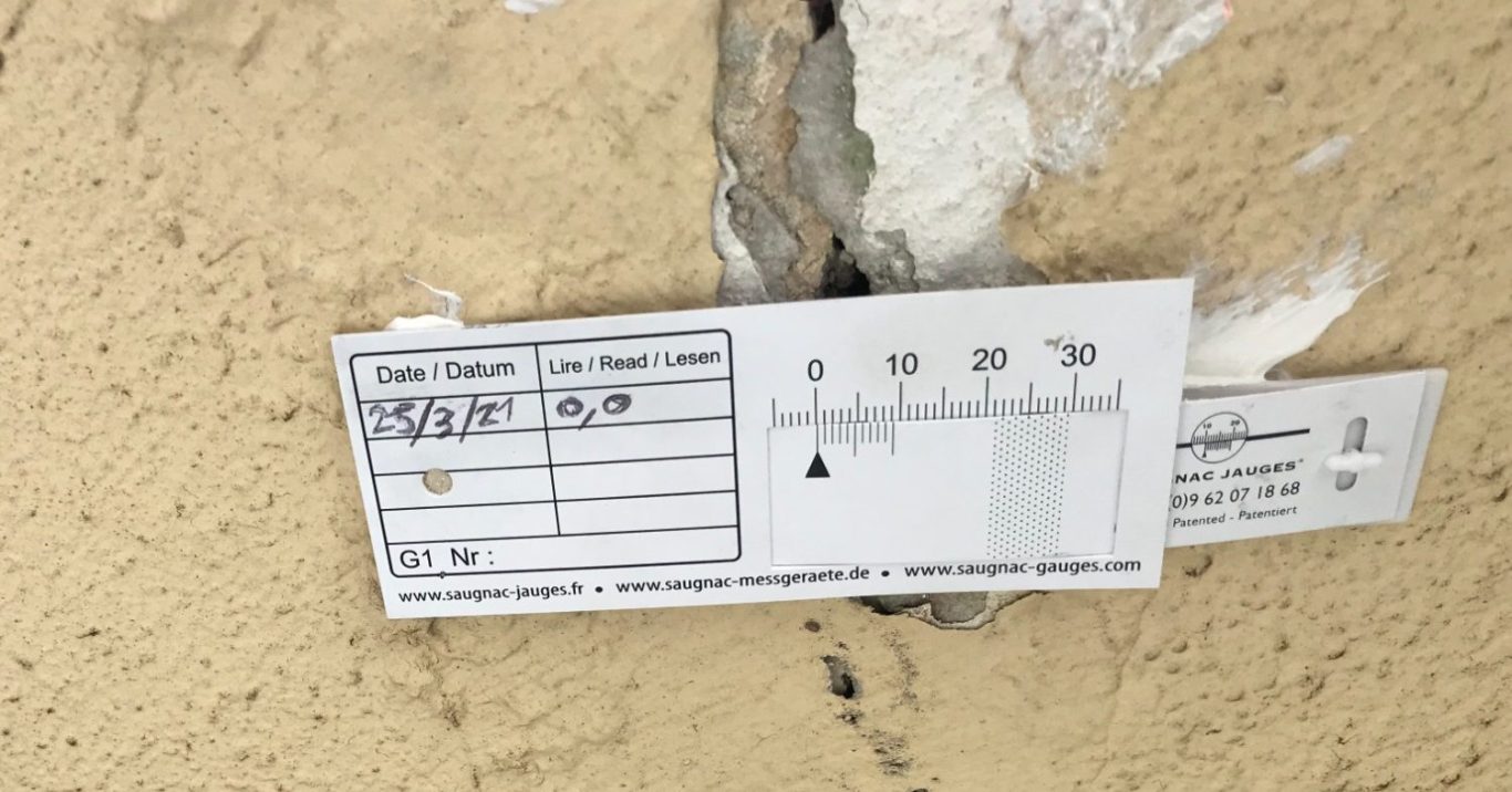 Pose sur fissure de jauge d'écartement visible depuis le sol.